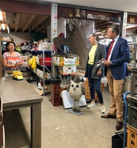 Maandag 20 juni hebben de wethouders René ten Have en Mirjam Havinga van de Gemeente Eemnes, een bezoek gebracht aan ons Kleurrijk. Zij kregen een rondleiding en uitleg over alle goederenstromen achter de schermen van ons Kleurrijk door onze directeur Caroline van den Broek. Daarna vertelde Caroline onder andere over de mogelijkheden op sociaal gebied, zo zijn er elk jaar ca. 40 nieuwe personen die werkervaring bij ons op komen doen.
