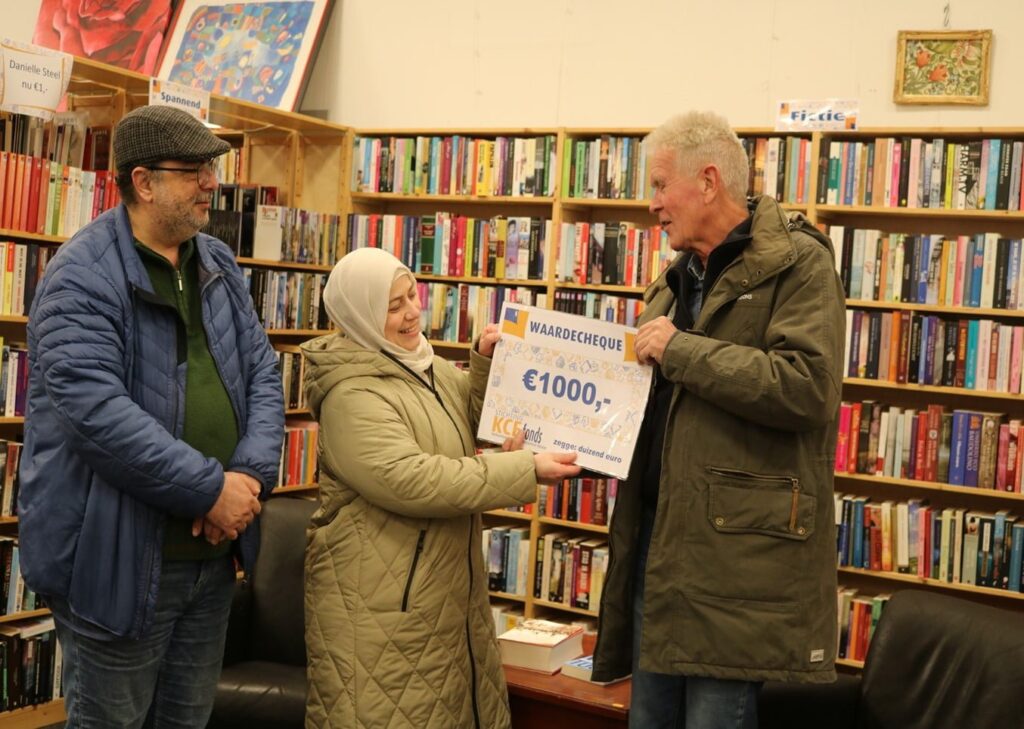 Zo werd op zaterdagmiddag 18 februari in het Kleurrijk in Huizen een cheque van € 1000,- overhandigd aan de Syrische kringloopvrijwilliger en haar man. Voorzitter Jaap Bood benadrukte in een korte speech zijn dankbaarheid dat het initiatief vanuit het Kleurrijk is gekomen. Tevens dat het een kleinschalig project is zodat hulp direct ten goede komt aan slachtoffers. In dit geval betreft het daklozen in de omgeving van de stad Idlib. Qua hulpverlening is dit tot nu toe een min of meer vergeten gebied ten zuidwesten van Aleppo.